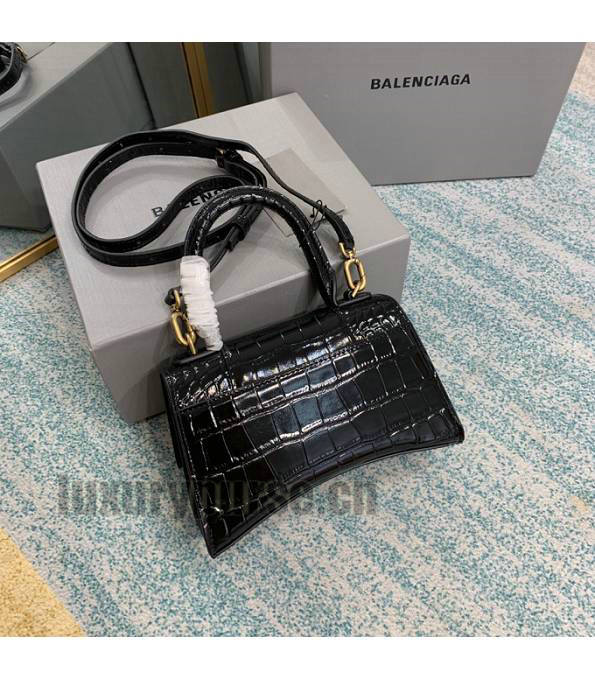 Balenciaga Black Original Croc Veins Calfskin Leather Golden Metal 19cm Hourglass Bag