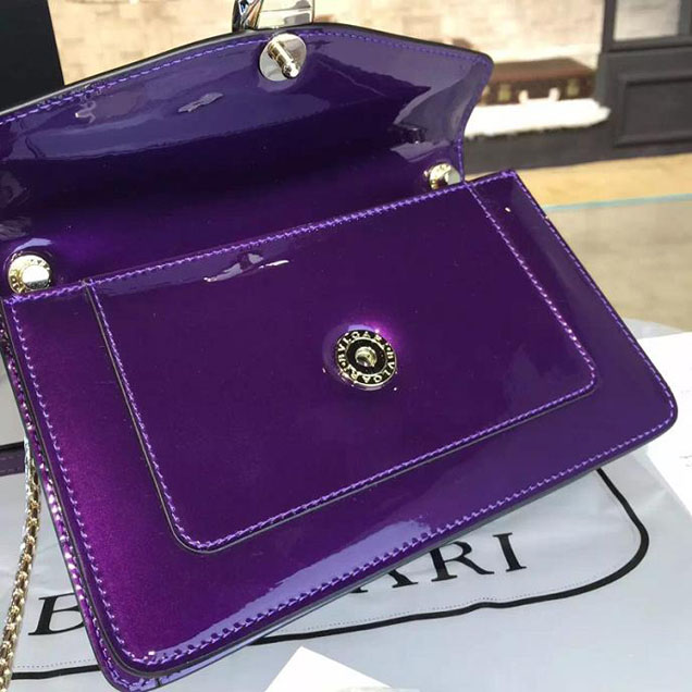 Bulgari Serpenti Flap Clutch Bag Patent Calfskin Leather Fall Winter 2015 Collection Purple