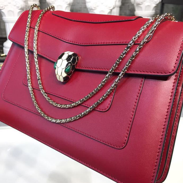 Bulgari Serpenti Forever Shiny Black and White Enamel with Green Malachite Eye Closure 28cm Bag with Two Gussets Calfskin Leather Spring Summer 2018 Collection Roman Garnet