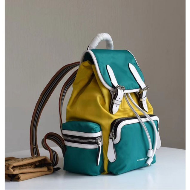 / Burberry Medium Rucksace in Colour Block Nylon and Leather Green/Yellow 2018 Collection