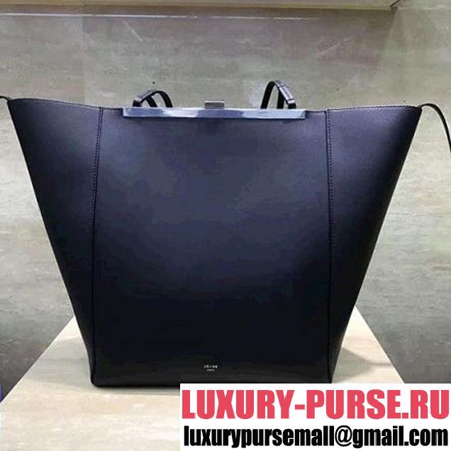 Celine Shiny Smooth Calfskin Twisted Cabas Small Bag Navy Blue and Black Runway 2015