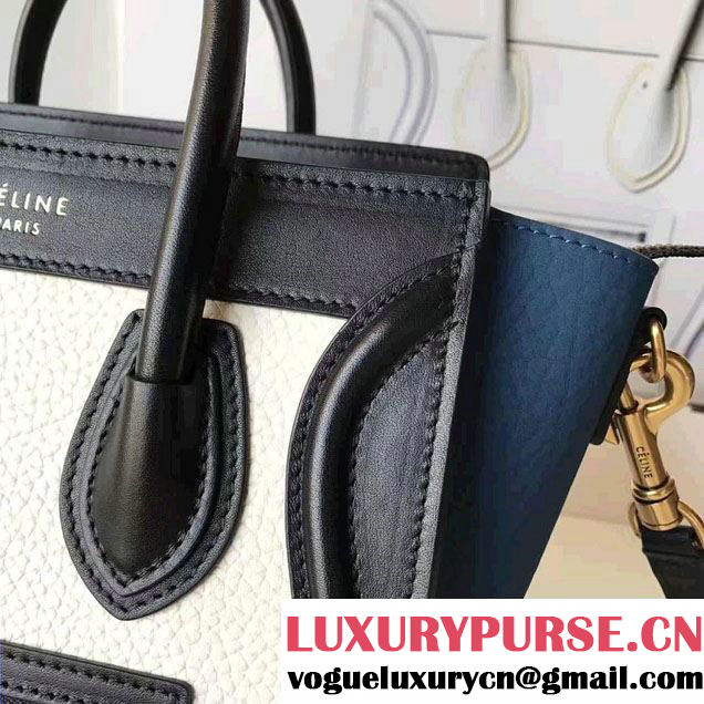/ Celine Luggage Nano Tote Bag In Grained Leather Black/White/Blue 2017