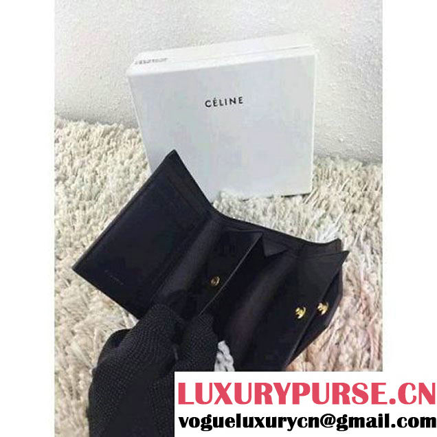 Celine Strap Grained Calfskin Medium Multifunction Wallet Black/Light Blue 2017 (1A021-7050314 )