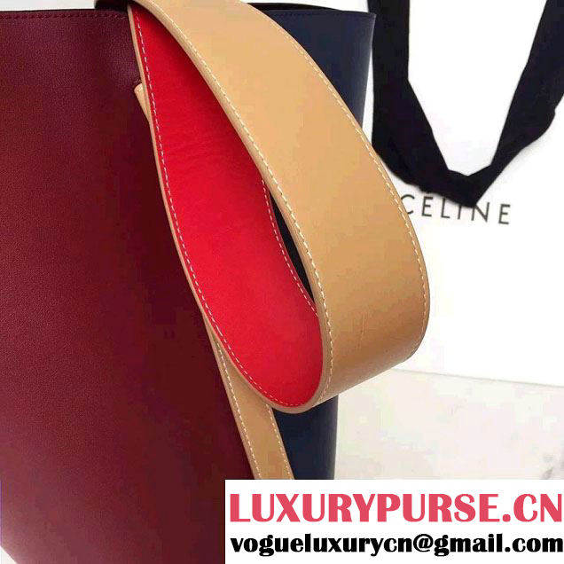 / Celine Shiny Smooth Calfskin Small Twisted Cabas Bag Burgundy/Navy 2016