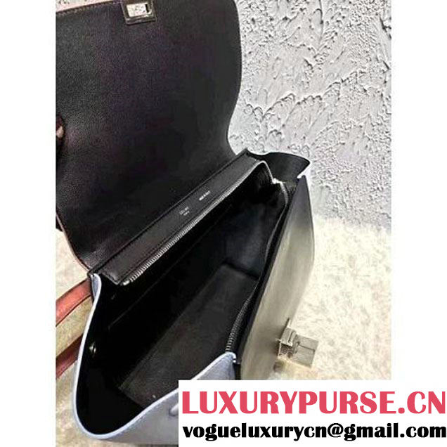 Celine Trapeze Top Handle Medium Bag Grained Calfskin with Suede Leather Pre-Fall Winter 2016 Collection White Black Blue