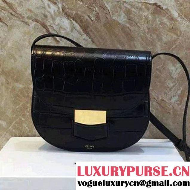 Celine Small Trotteur Shoulder Bag In Calfskin Crocodile Pattern Brown Winter 2016 (XLD-6100706 )