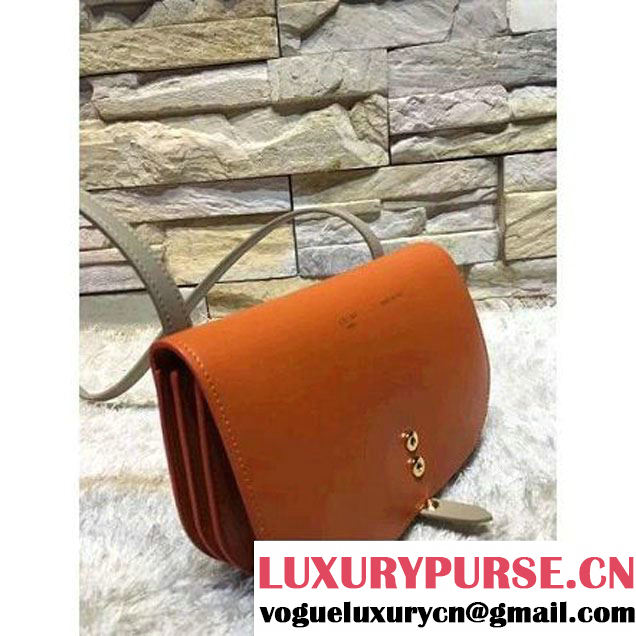 Celine Strap Clutch On Strap In Shiny Calfskin Orange/Gray Summer 2016 (1A021-6061325 )