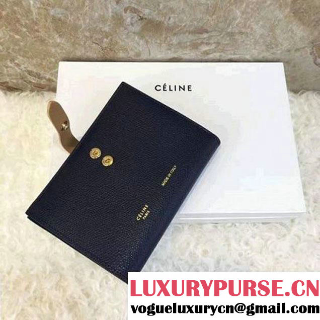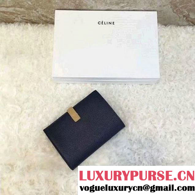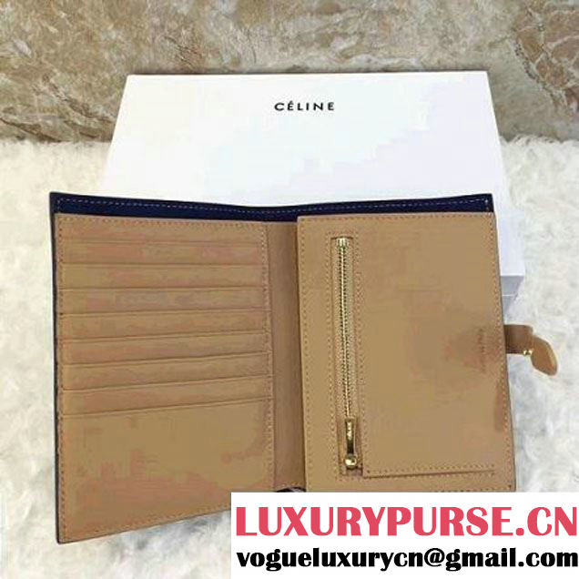 Celine Strap Smooth Chevron Calfskin Large Multifunction Wallet Navy/Black 2017