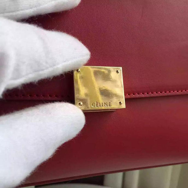 Celine Trapeze Small/Medium Tote Bag in Original Calfskin Leather Red/Burgundy