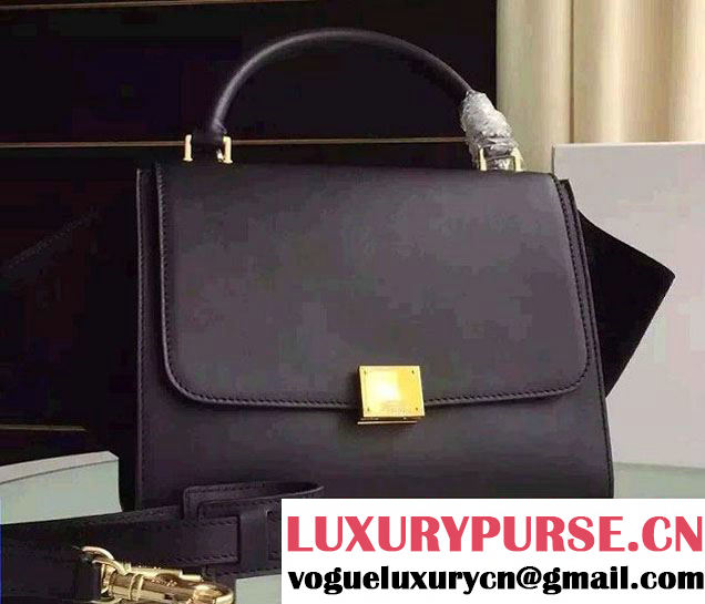 Celine Trapeze Bag Original Smooth Leather Spring Summer 2015 Collection Black Black Suede