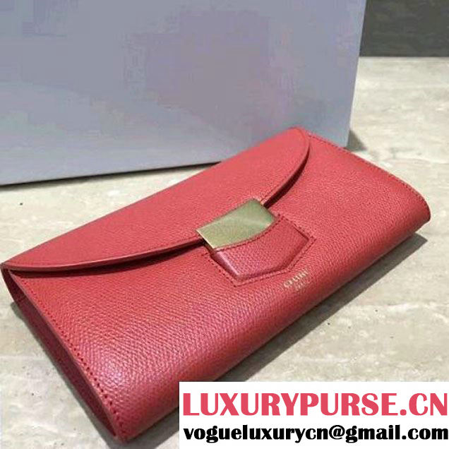 Celine Trotteur Large Flap Multifunction Wallet In Grained Calfskin Dark Pink 2017 (1A021-7072505 )