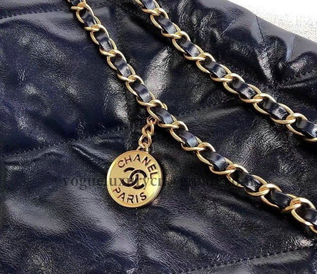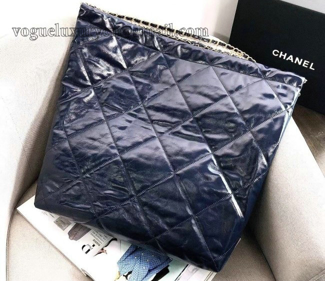 Chanel 22 Shiny Calfskin Large Shopping Bag AS3262 Navy Blue/Gold 2022