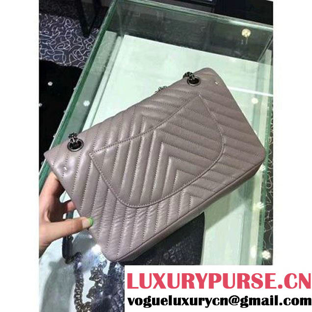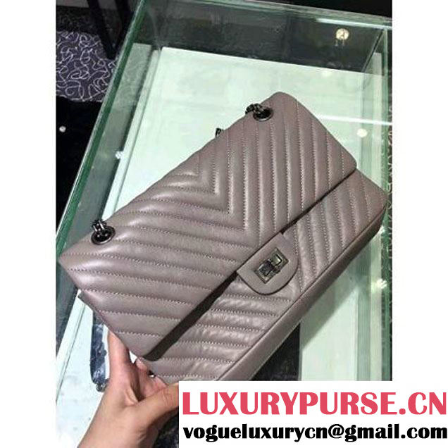 Chanel 2.55 Medium 226 Chevron Double Flap Bag In Gray Aged Calfskin(Silver Hardware) (1A001-6072138 )
