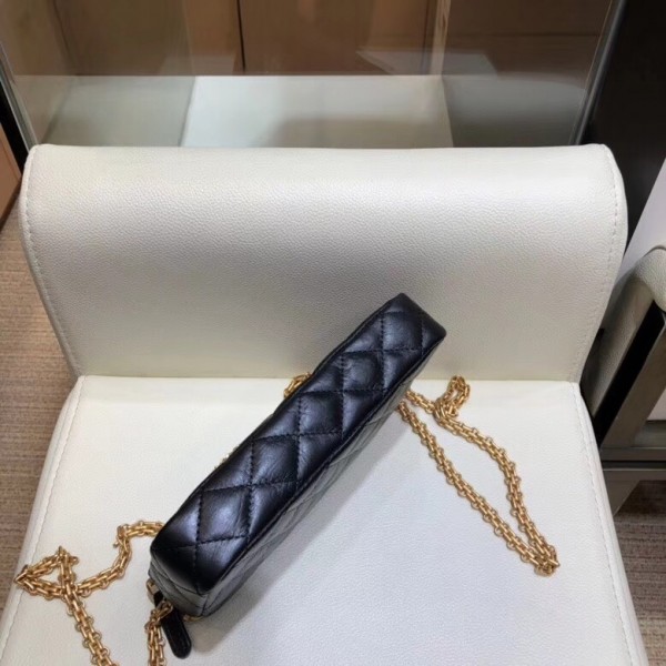 Chanel Metallic Aged Lambskin Clutch Bag with Chain A84509 Black 2018