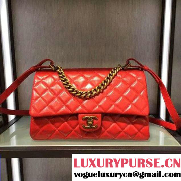 Chanel A93443 Sheepskin Large Trapezio Flap Bag With Handle Red Paris 2016 (2A143-6062108 )