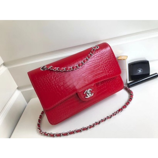 / Chanel Alligator Textured Pattern Classic Flap Bag A01112 Red 2018