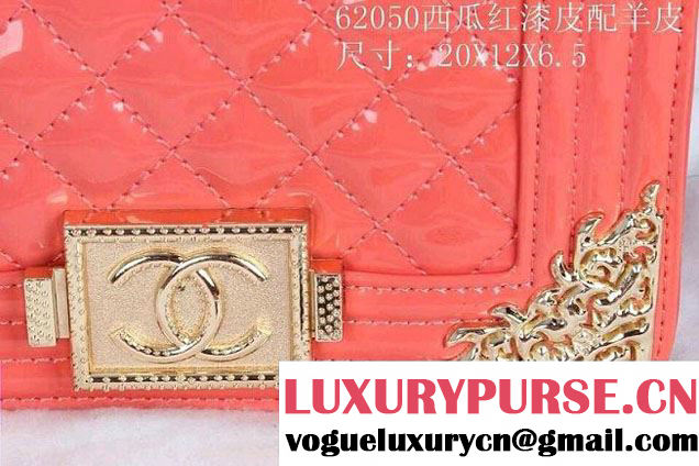 Chanel Boy Patent Leather with Golden Embellished Bag in Red 2014
