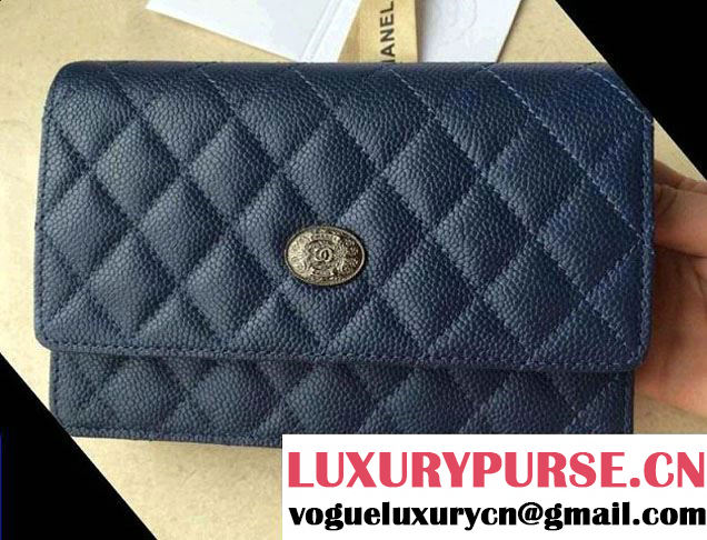 Chanel Calfskin Chain Boy Wallet On Chain WOC Bag A83222 Blue 2016