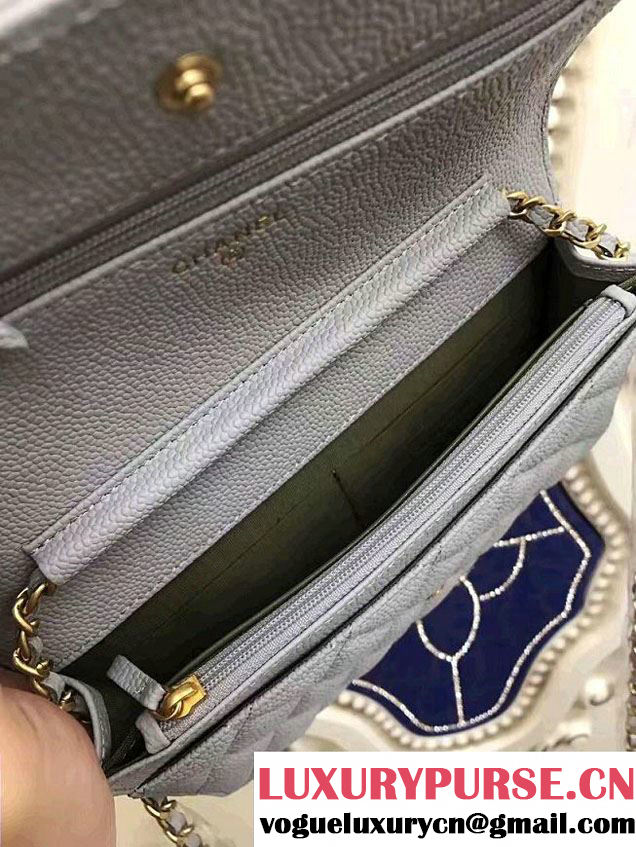 / Chanel Boy Wallet On Chain WOC Bag In Grained Leather Gary/Gold