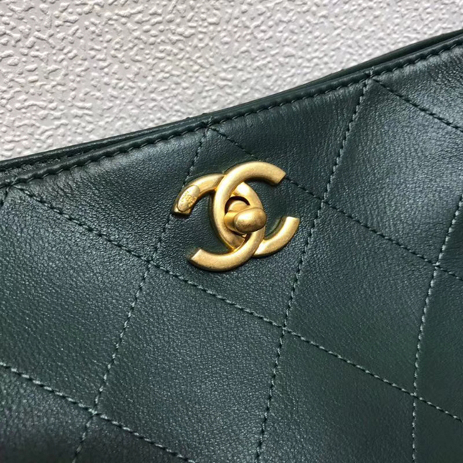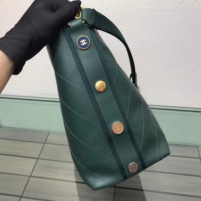 / Chanel Button Up Calfskin & Grosgrain Hobo Handbag A57576 Green 2018