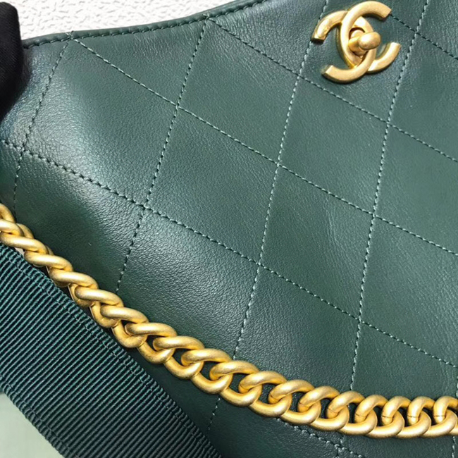 Chanel Button Up Calfskin & Grosgrain Hobo Handbag A57576 Green 2018