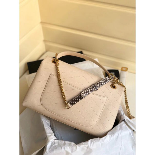 / Chanel Calfskin Chevron Chic Large Flap Top Handle Bag A57149 Beige 2018
