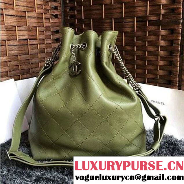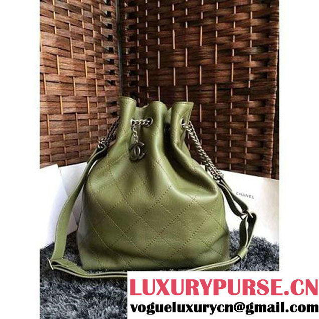 Chanel Calfskin Drawstring Bucket Bag 2016 Paris Olive (1a086-6052732 )