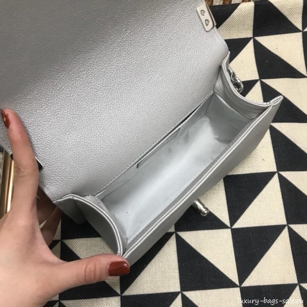 Chanel Camellia Small Boy Flap Bag A67085 Silver 2019 Collection