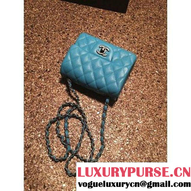 Chanel Caviar Calfskin Leather Mini Classic Flap Bag A1115 Cyan (Silver Hardware) (MC-121543 )