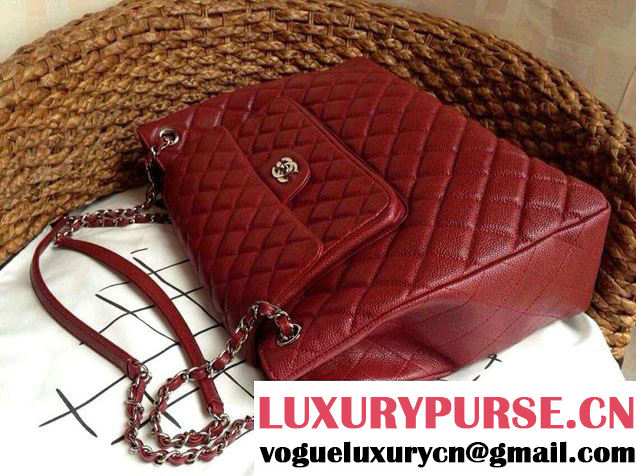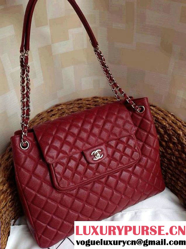 Chanel Caviar Leather Shopping Tote Bag in Date Red