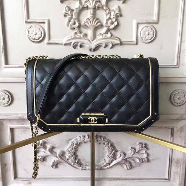 Chanel CC Clasp Medium 25cm Flap Bag Lambskin Metallic Leather Satchel Bag Metiers D’Art Pre-Fall 2017 Collection Black