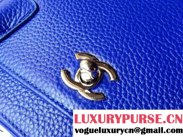 Chanel Lizard Top Handle Grained Calfskin Flap Shoulder Medium Bag A92991 Blue 2015/2016