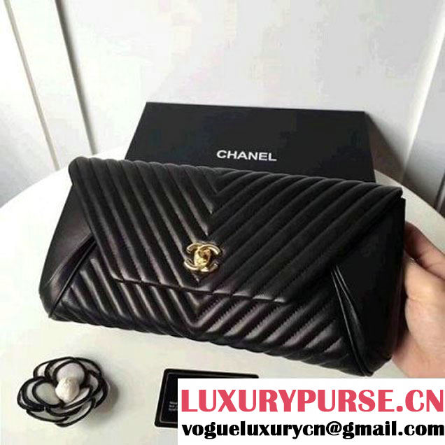 Chanel Chevron Lambskin Clutch Bag A98558 Black 2017 (2A143-7101412 )