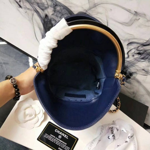 / Chanel Chevron Lambskin Handle with Chic Bucket Bag A57861 Blue 2018 Collection