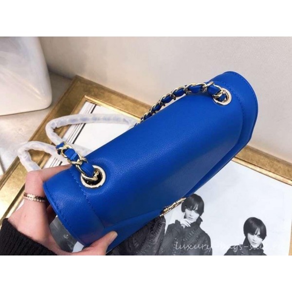 Chanel Flap Bag A57551 Blue Calfskin Gold Tone Metal