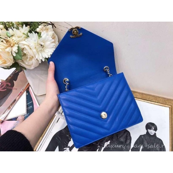 / Chanel Chevron Medium Flap Bag AS0025 Blue 2019