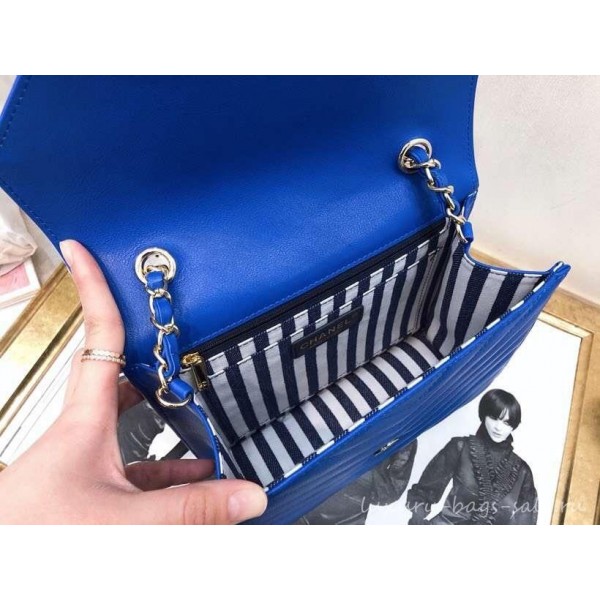 Chanel Chevron Medium Flap Bag AS0025 Blue 2019