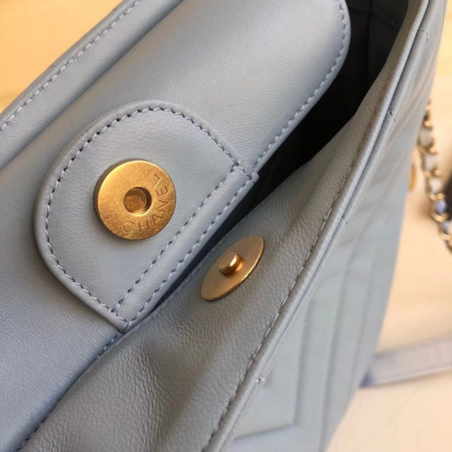 / Chanel Chevron Multicolor Chain Bucket Bag Light Blue 2018