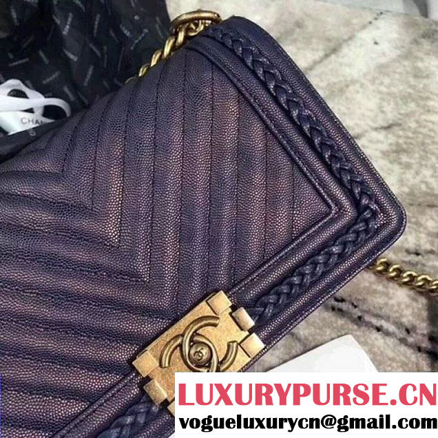 Chanel Chevron Patinated Calfskin Boy Braided Old Medium Flap Bag A67086 Navy 2018 (KS-7121609 )