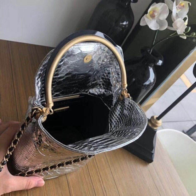 / Chanel Chevron Python Handle with Chic Bucket Bag A57861 Silver 2018 Collection