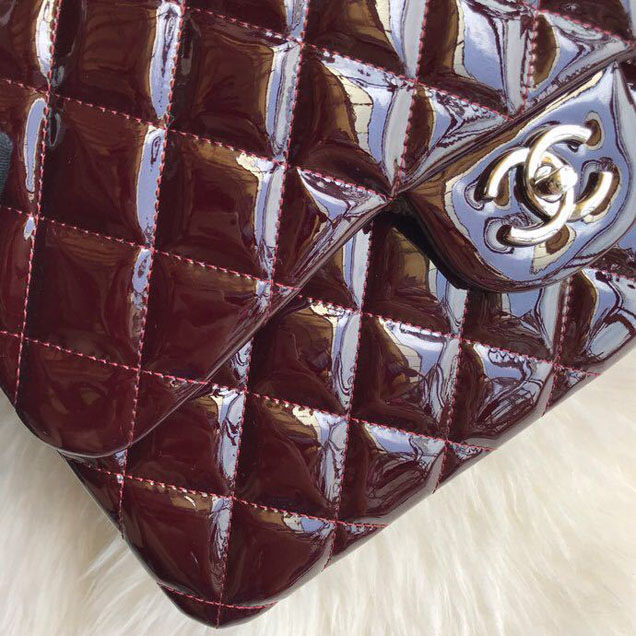 Chanel Classic Double Flap Bag 30cm Silver Hardware Patent Lambskin Leather Spring Summer Act 2 2018 Collection Burgundy