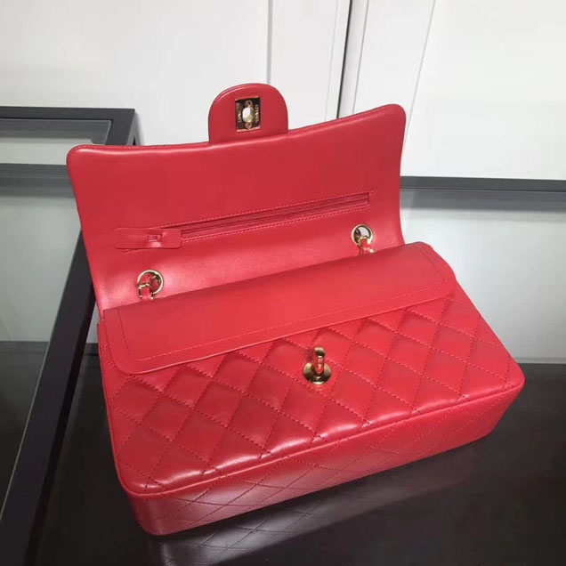 Chanel Classic Double Flap Bag Gold Hardware Lambskin Leather Spring Summer Act 2 2018 Collection Red