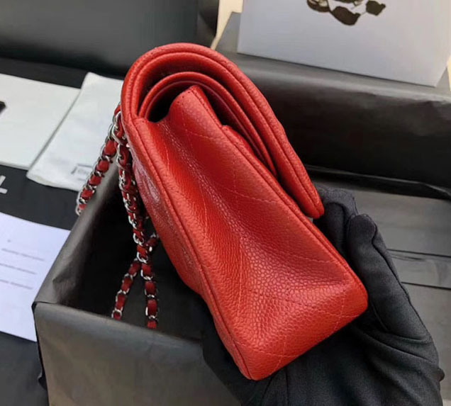 Chanel Classic Flap Bag 30cm Red Grained Calfskin Silver-Tone Metal