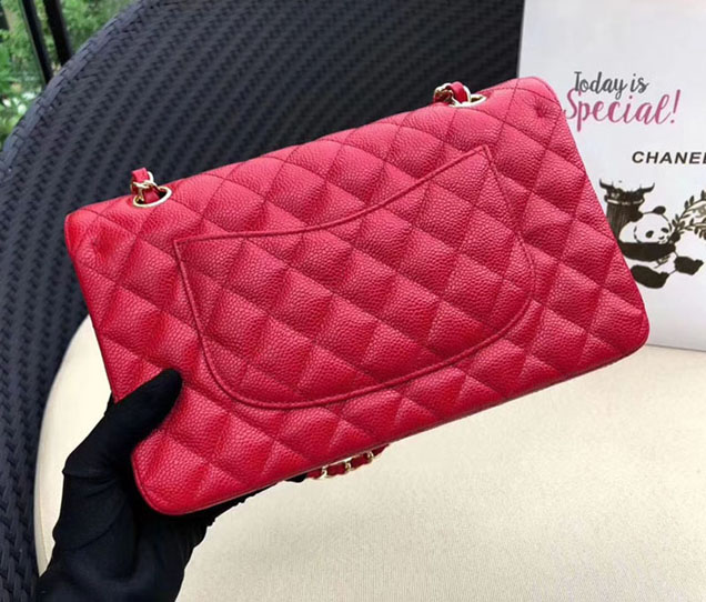 Chanel Classic Flap Bag 30cm Rose Red Grained Calfskin Gold-Tone Metal