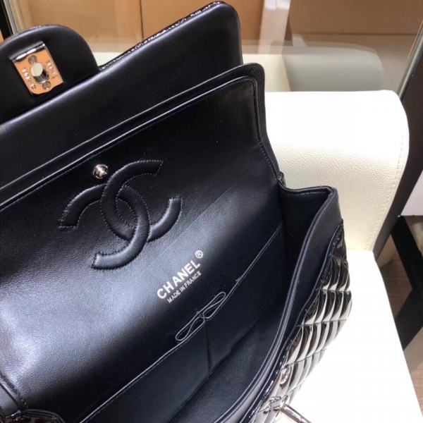 / Chanel Classic Flap Medium Bag Black in Patent Leather with Silver Hardware