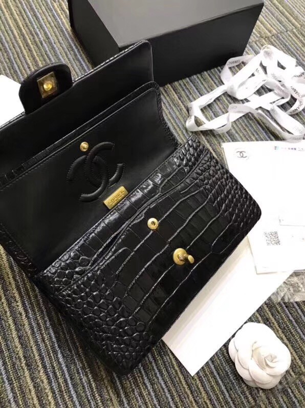 / Chanel Classic Handbag Original Alligator & Gold-Tone Metal A01112 black