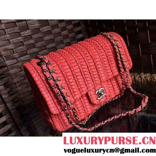 Chanel Crochet Embroidered Lambskin Medium Flap Bag Brick Red Cruise 2016 (1a086-6042220 )