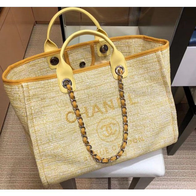 Chanel Deauville Canvas Shopping Tote Medium Bag Yellow