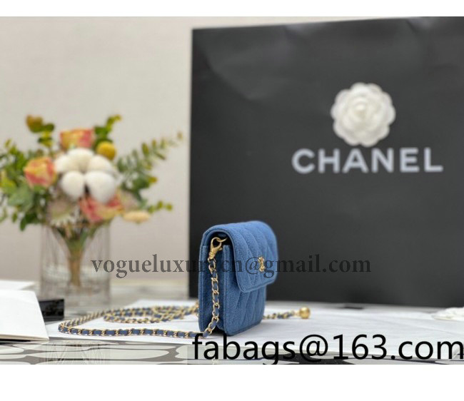 / Chanel Denim Clutch with Chain and Ball AP1628 Dark Blue 2022 26