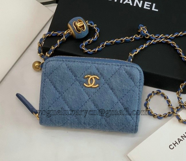 / Chanel Denim Clutch with Chain and Ball AP2462 Light Blue 2022
